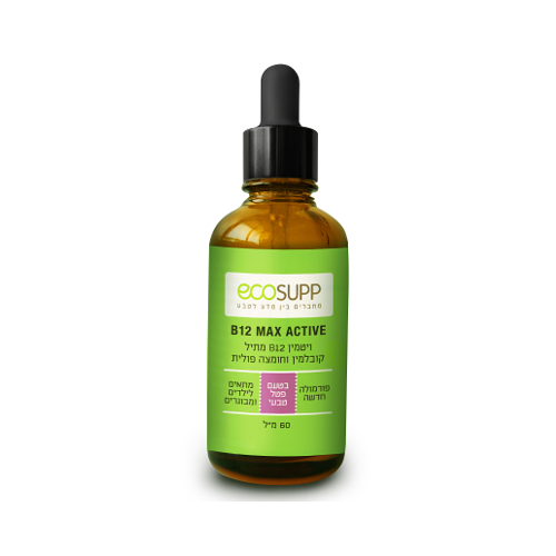 ויטמין B12 Max Active בתוספת חומצה פולית טבעית לניצול מירבי בגוף האדם.